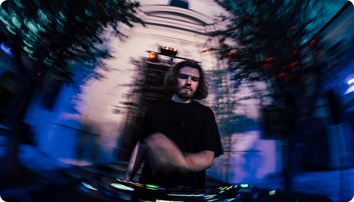 But it’s not just about playing music. Off the decks, he’s helping shape the underground scene in Hradec Králové by organizing intimate raves, collaborating with local crews, and giving space to emerging voices.